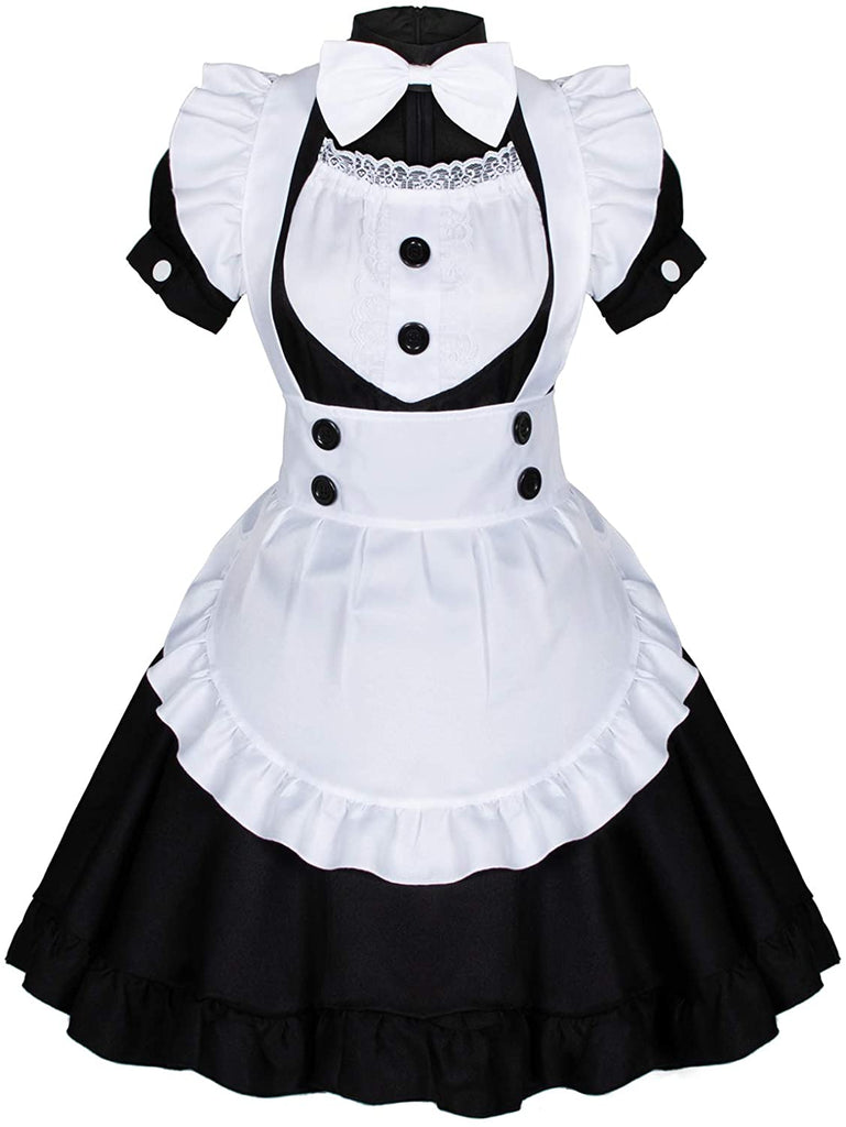 Japanese Anime Sissy Maid Dress Cosplay Sweet Classic Lolita Fancy Apron Maid Dress with Socks Gloves Set