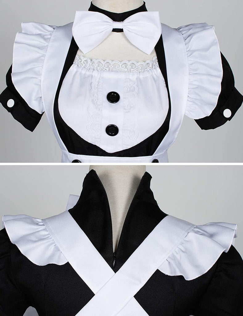 Women's anime cosplay french apron maid lolita fancy dress furry ears accessories headwear party cosplay costume. This style is classic Japanese black white cosplay cat fox long plush furry maid