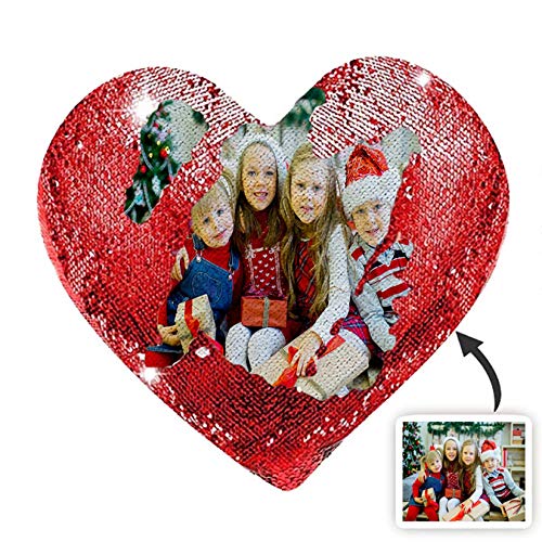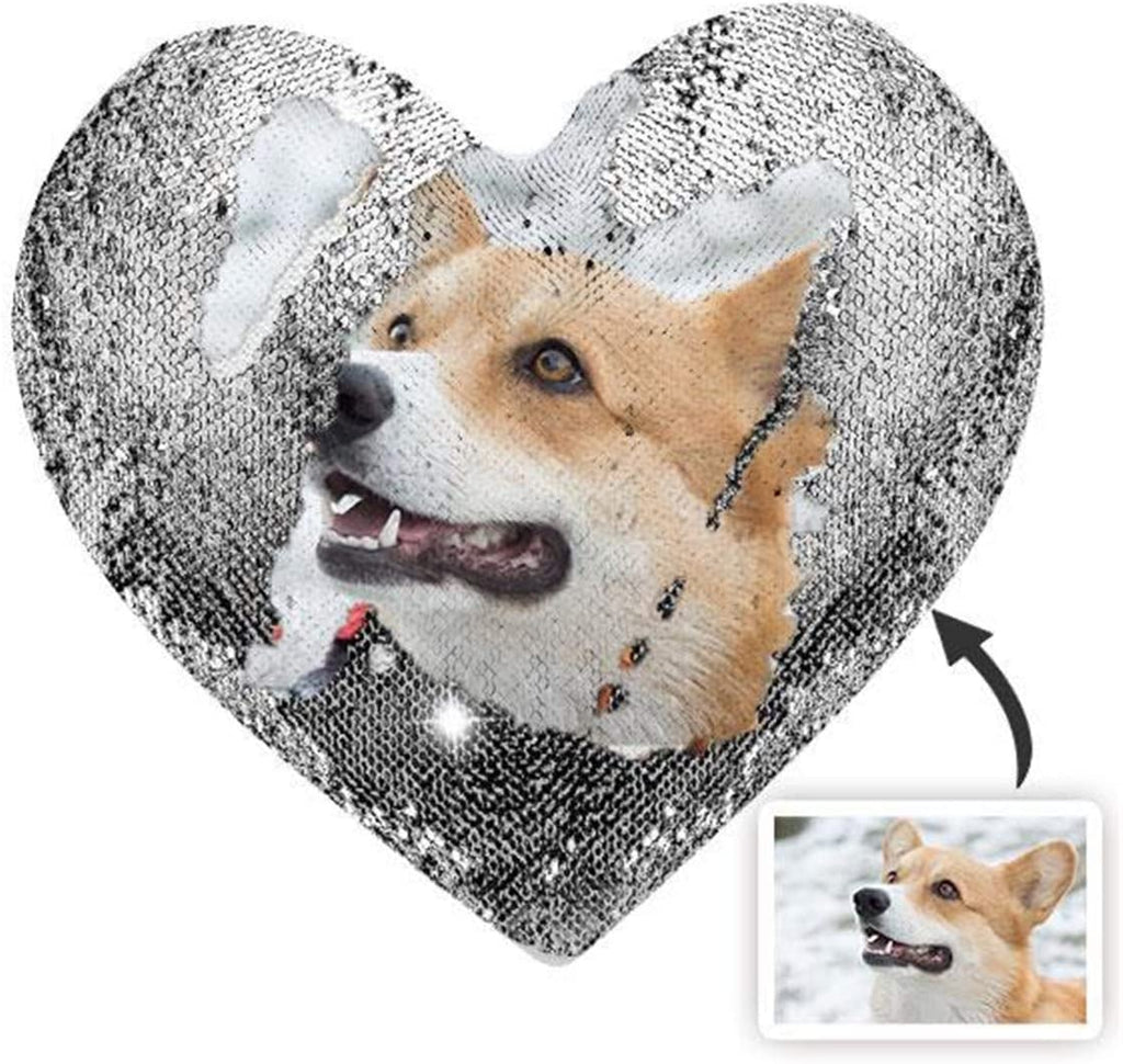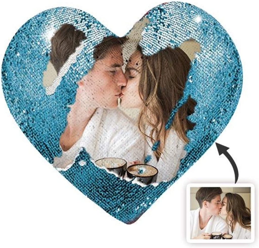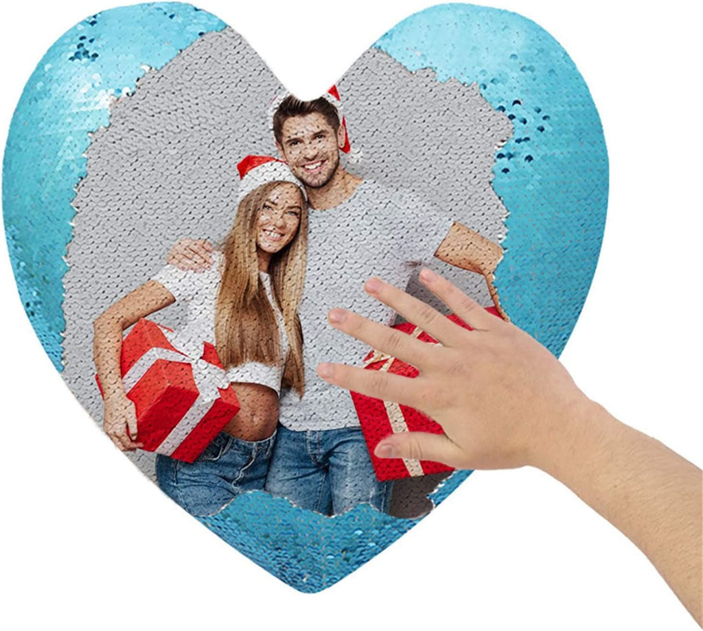 Custom Photo Heart Shape Sequin Pillow Custom Sequin Magic Pillow